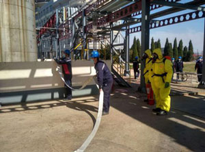 今年6月是第19個(gè)全國(guó)“安全生產(chǎn)月”,主題是“消除事故隱患,筑牢安全防線”,為響應(yīng)國(guó)家“安全生產(chǎn)月”活動(dòng)精神,貫徹落實(shí)國(guó)家安全生產(chǎn)方針,進(jìn)一步增強(qiáng)員工的安全防護(hù)意識(shí),有效地防止和最大限度地減少事故隱患。我公司共組織開(kāi)展了三次應(yīng)急演練,包括液體環(huán)氧樹(shù)脂裝置環(huán)氧氯丙烷泄漏、火災(zāi)、人員受傷綜合應(yīng)急演練;液體環(huán)氧樹(shù)脂裝置原料罐區(qū)、庫(kù)房化學(xué)品泄漏現(xiàn)場(chǎng)處置方案應(yīng)急演練;液體環(huán)氧樹(shù)脂裝置車(chē)間甲苯泄漏、火災(zāi)現(xiàn)場(chǎng)處置方案應(yīng)急演練。以檢驗(yàn)、提高處置化學(xué)品災(zāi)害事故的水平和能力,促使員工不斷提高自救和互救的能力,培養(yǎng)鍛煉員工在突發(fā)事故狀態(tài)下的應(yīng)急反應(yīng)、處置能力。三次演練過(guò)程中,各個(gè)參加演練的應(yīng)急小組在現(xiàn)場(chǎng)應(yīng)急指揮人員的統(tǒng)一指揮下迅速響應(yīng)、分工明確、流程清晰、內(nèi)容具體,整個(gè)過(guò)程都在緊張有序,有條不紊的進(jìn)行。